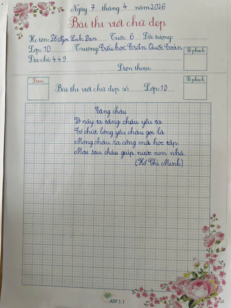 Khối 1: Em Đỗ Ngọc Linh Đan – Lớp 1D