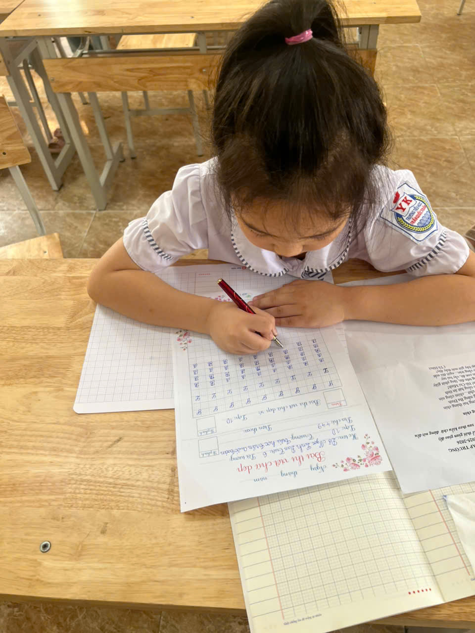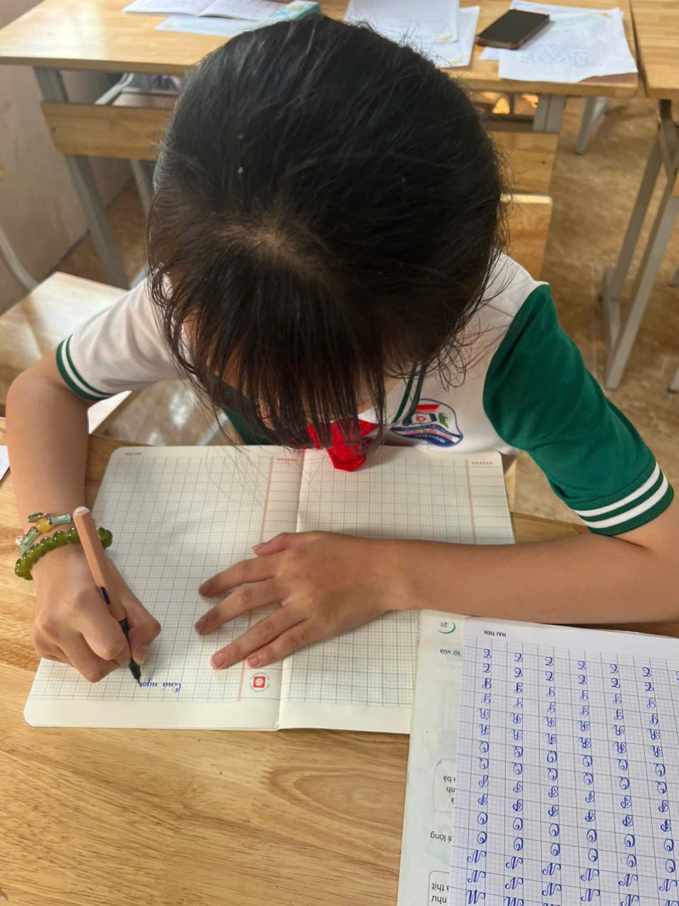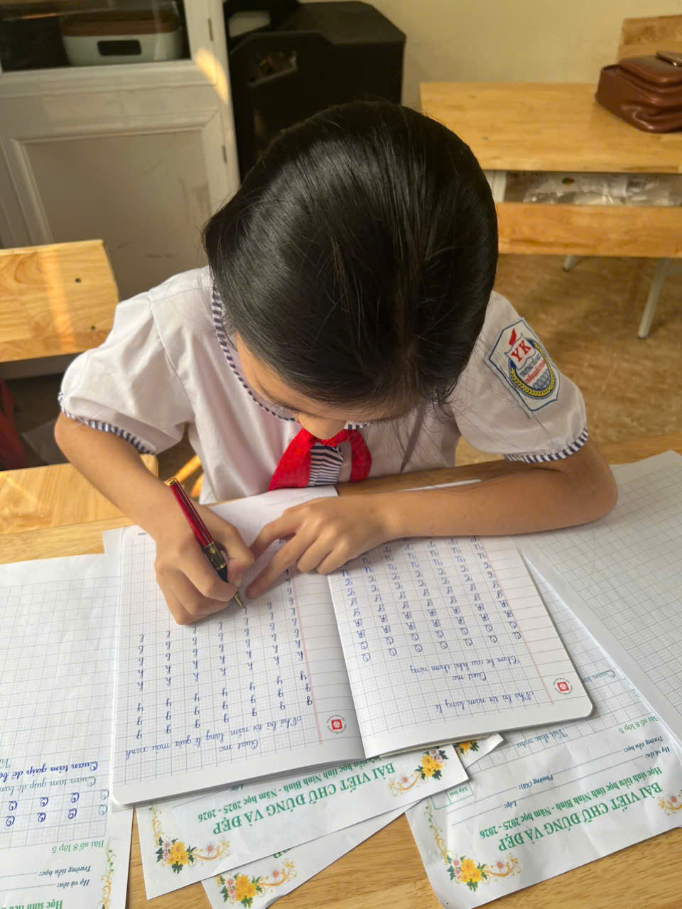 Cuộc thi diễn ra trong không khí nghiêm túc nhưng không kém phần hào hứng. Từng nét chữ tròn trịa, thanh đậm đều tăm tắp là thành quả của sự kiên trì, tỉ mỉ mà các em học sinh đã rèn luyện mỗi ngày. Cuộc thi không chỉ là sân chơi bổ ích mà còn góp phần lan tỏa mạnh mẽ phong trào “Rèn chữ – Giữ vở” trong toàn trường.
