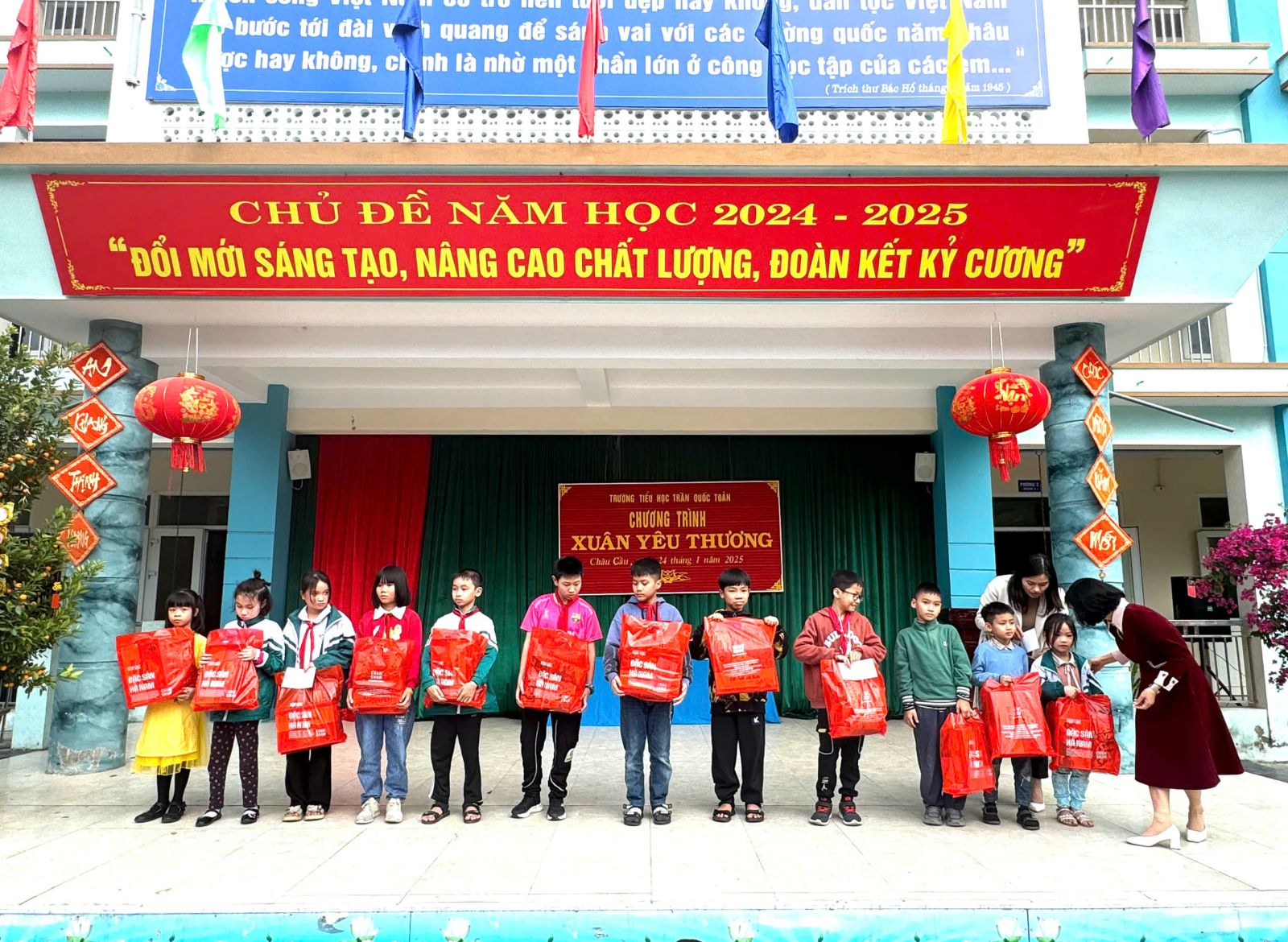 Mùa xuân là mùa của sức sống mãnh liệt, mùa để cây lá đâm chồi nảy lộc, mùa của những mầm non xanh mơn mởn thoát khỏi lớp vỏ xù xì để vươn mình đón chào những tia nắng ấm áp diệu kì. Mùa xuân mang lại cho con người ta thật nhiều niềm vui, ước mong và hi vọng. Với tựa đề “ XUÂN YÊU THƯƠNG 2025” chương trình Tết vì học sinh nghèo có hoàn cảnh khó khăn biết vươn lên trong học tập. Sáng ngày 20 tháng 1 năm 2025, TTrường Tiểu học Trần Quốc Toản long trọng tổ chức chương trình “xuân yêu thương” và giành tặng những suất quà cho học sinh có hoàn cảnh khó khăn vươn lên trong học tập.